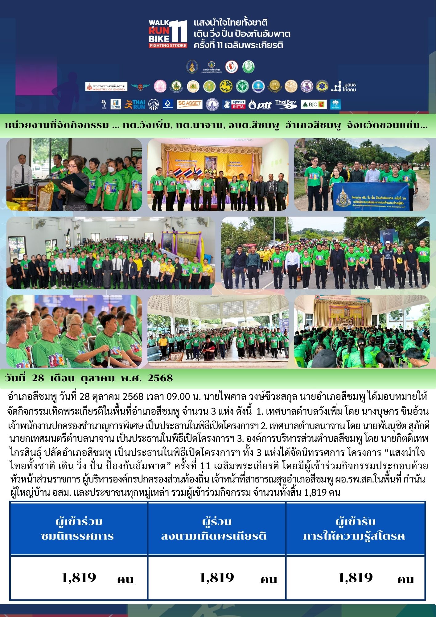 หน่วยงานที่จัดกิจกรรม ทต.วังเพิ่ม ทต.นาจาน อบต.สีชมพู