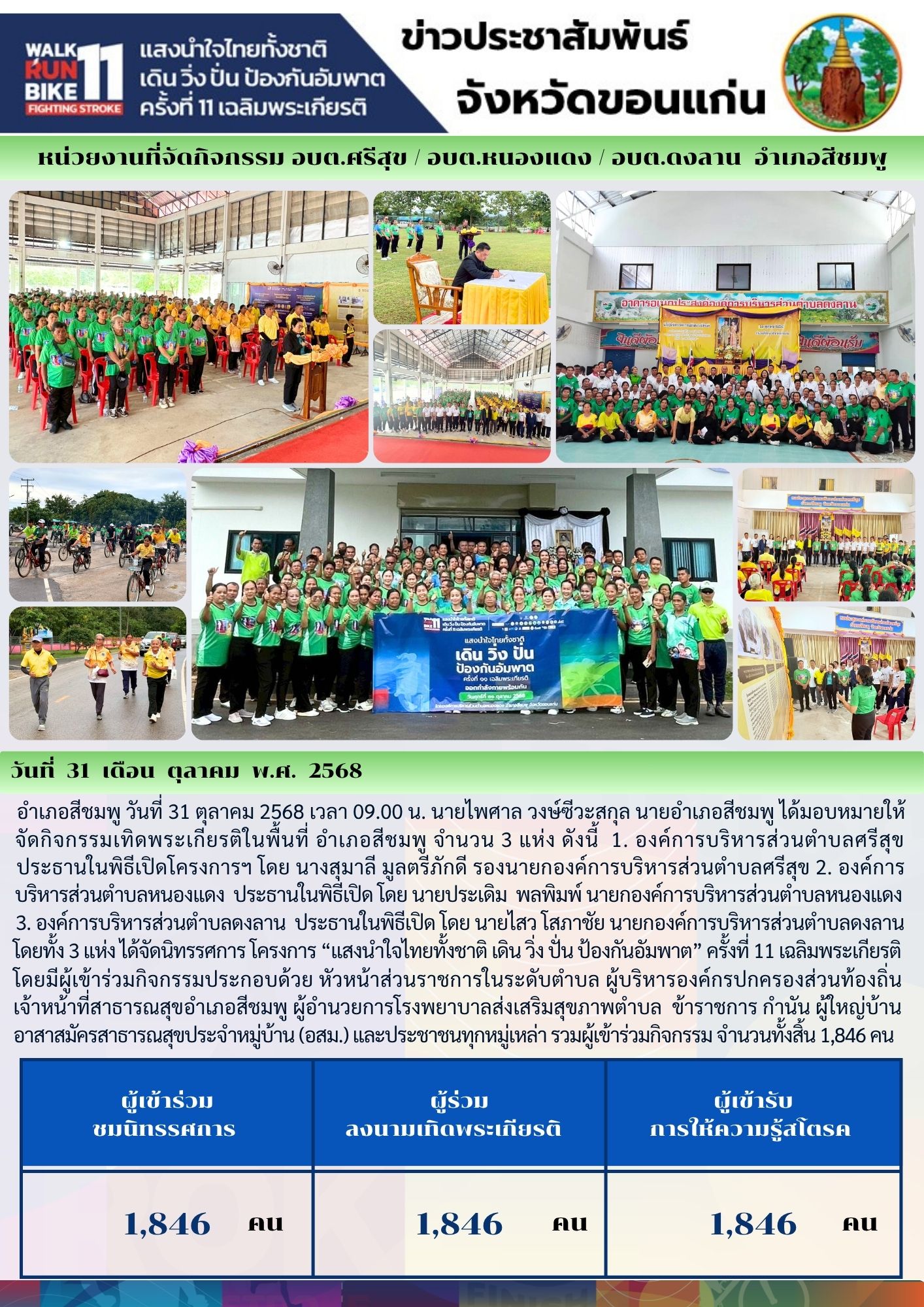หน่วยงานที่จัดกิจกรรม อบต.ศรีสุข อบต.ดงลาน อบต.หนองแดง